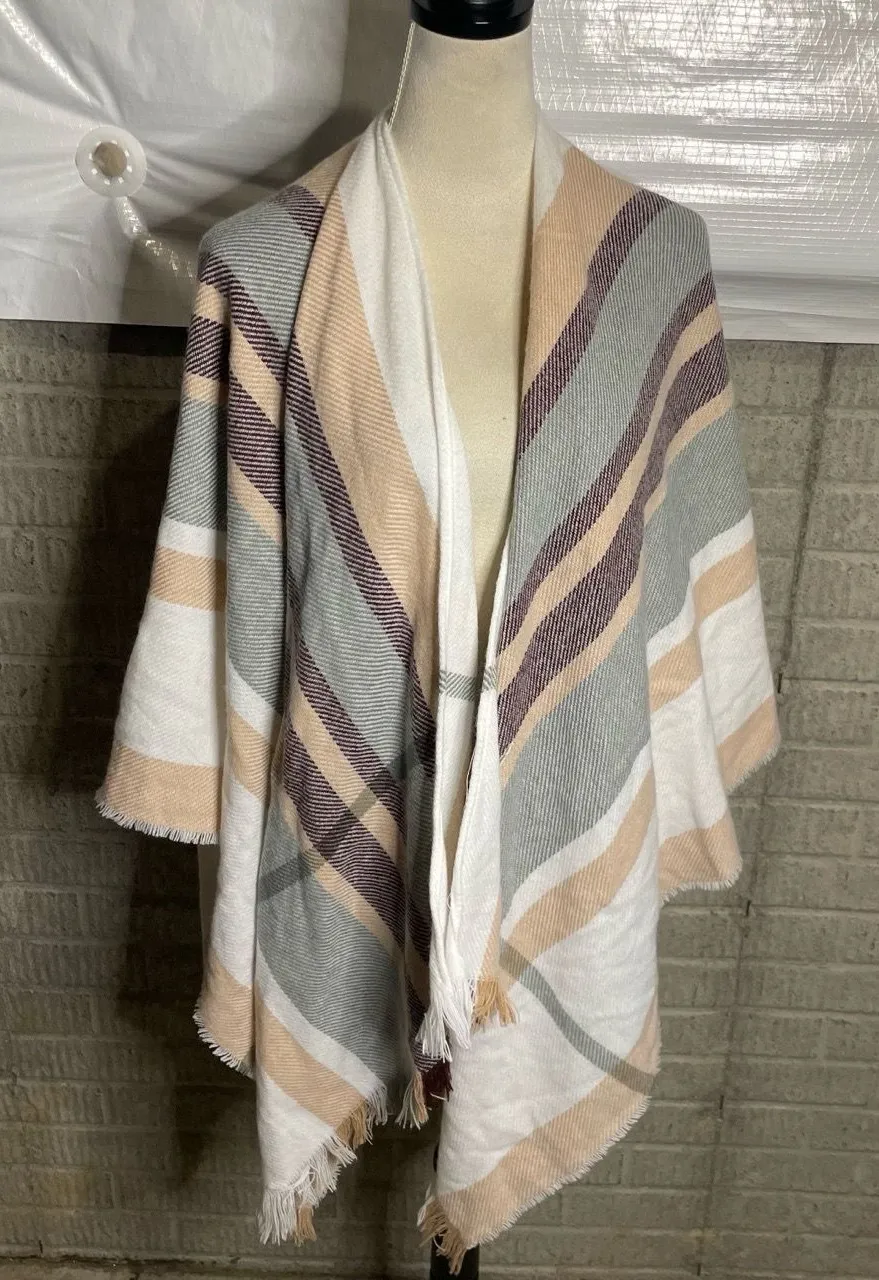 David And Young Womens Multicolored Striped Fringed Edges Tie Waist Poncho Shawl Size OS Add a pop... Show more