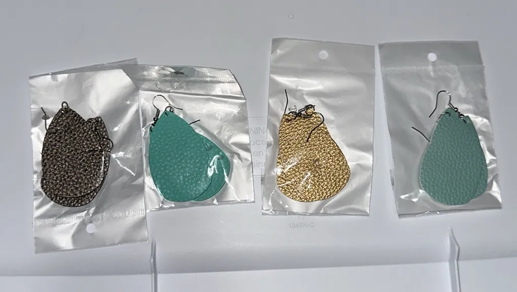Bundle includes Four earrings Colors: metallic gray / gunmetal ; turquoise ; gold / bronze ; light b... Show more
