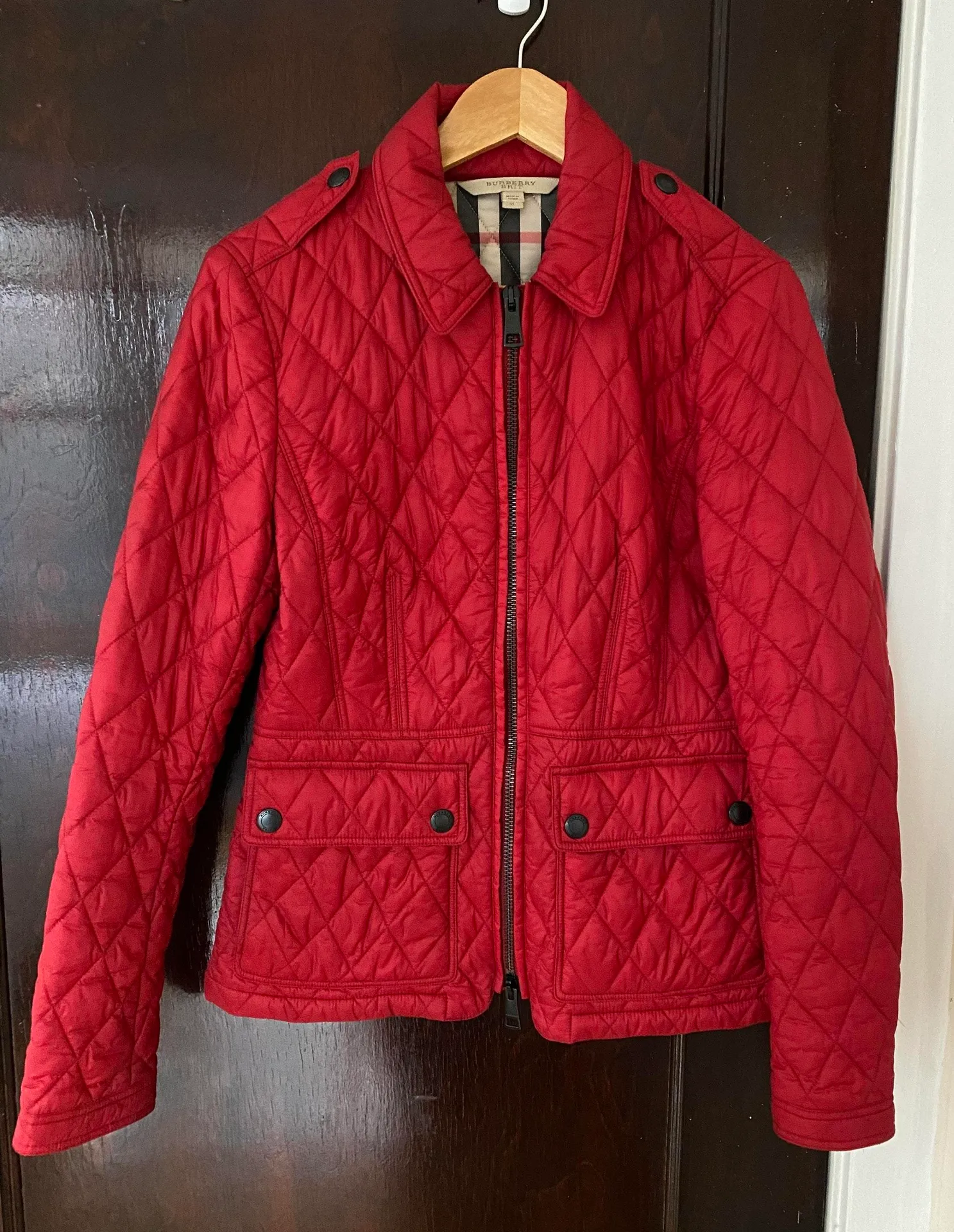 Burberry Brit outerwear jacket for women size M. Red diamond quilted exterior with black hardware (s... Show more