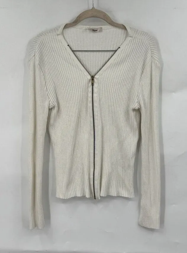 Good pre owned condition with mild wear to the fabric. Full zip . Size 2. All measurements are approximate: 27 inches pit to pit. 19 inch sleeve from cuff to pit. 22.5 inch length from shoulder to bottom hem. Q1