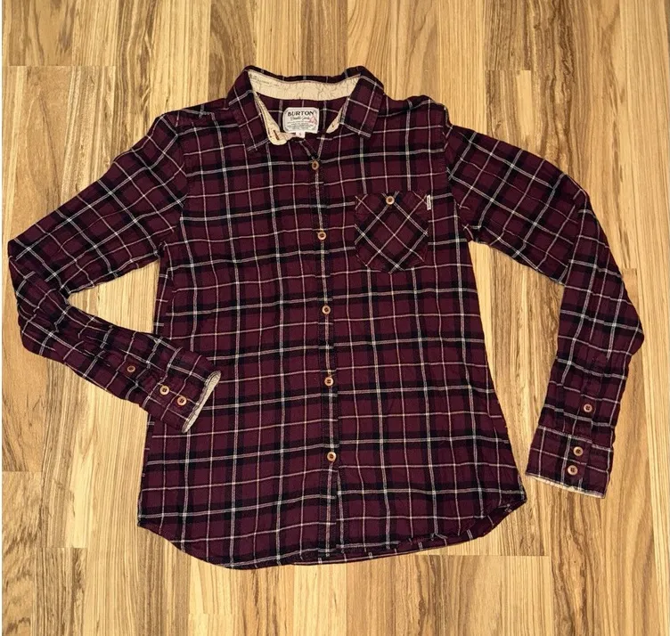 Burton‎ Womens Plaid Flannel Shirt Size Small S Woven Button Outdoor Travel EUC Purple - $22 - From Dana