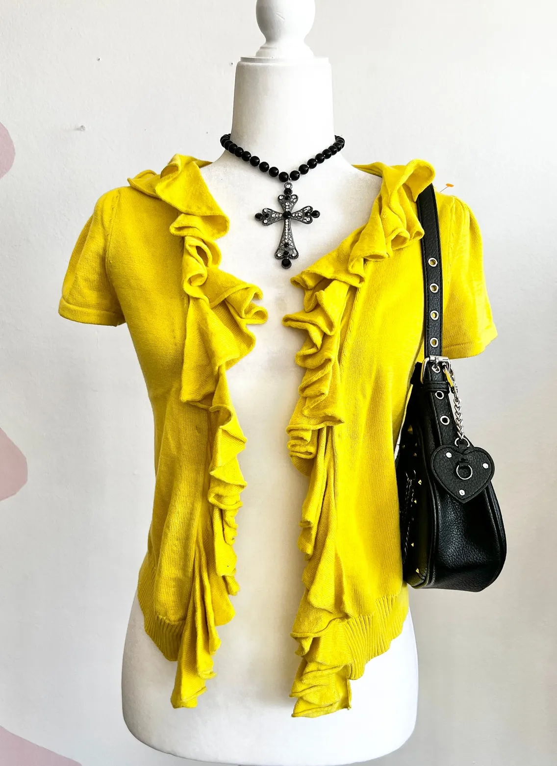 Butter Yellow Ruffle Cardigan, Cottagecore, Soft Girl, Vintage,‎ Feminine, Small - $13 - From Kenia