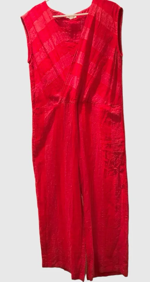 BuYKUD red striped Jumpsuit Size M/ pit 22”, waist 38”, inseam 20”, leg width 11” pockets good condition • Missing material/ care tags. It’s a linen or linen blend. All Sales are final Good condition