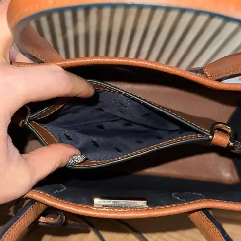 Khaki colored with brown leather Kate Spade purse with crossbody strap. Like new. Sold as seen in pi... Show more