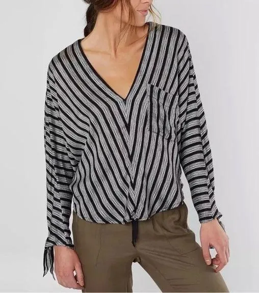 Gently preowned, super cute details and styling, clean and ready to go Striped v-neck top High low h... Show more