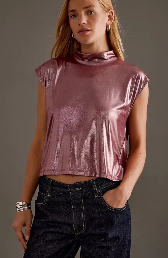 Elegant sleeveless blouse with a shimmering finish. Ideal for evening wear. Size large Drape back G... Show more