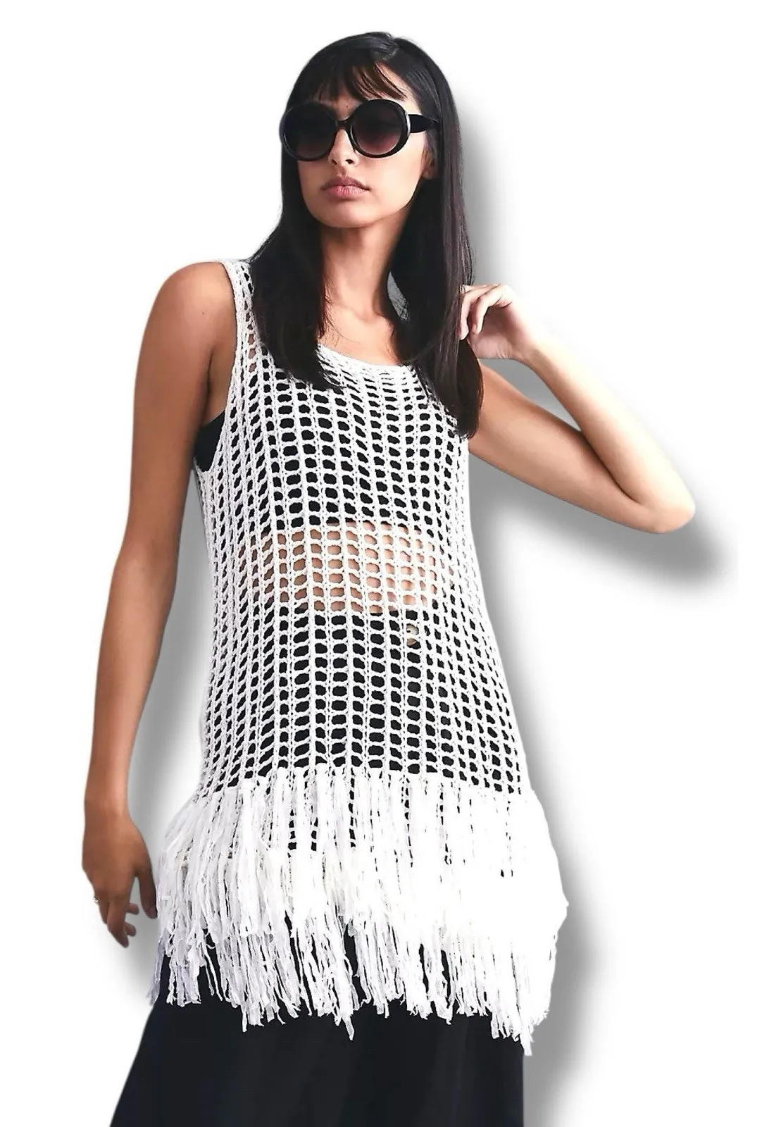 The Anthropologie Crochet Knit Fringe Tank Top Tunic is a stylish and versatile piece perfect for va... Show more