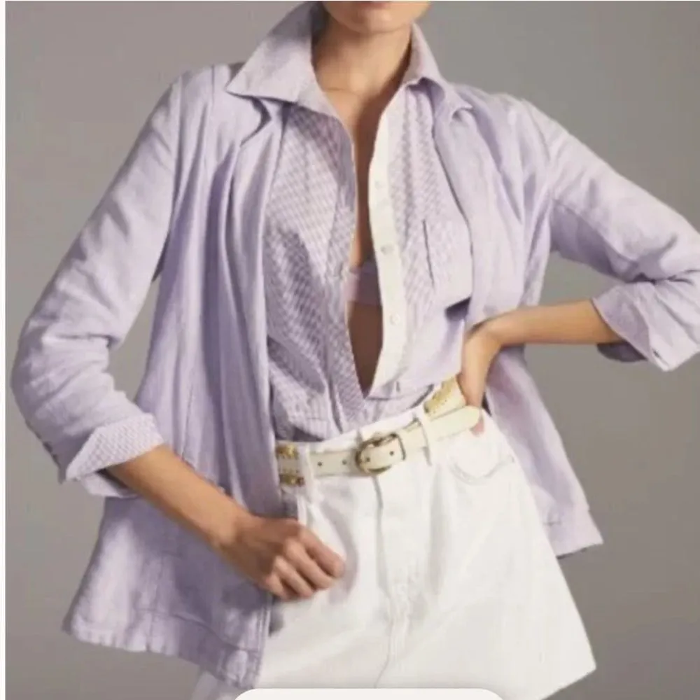 55% Linen,viscose blend Front welt pockets Open front Machine Wash Size 8 Excellent condition! 28... Show more