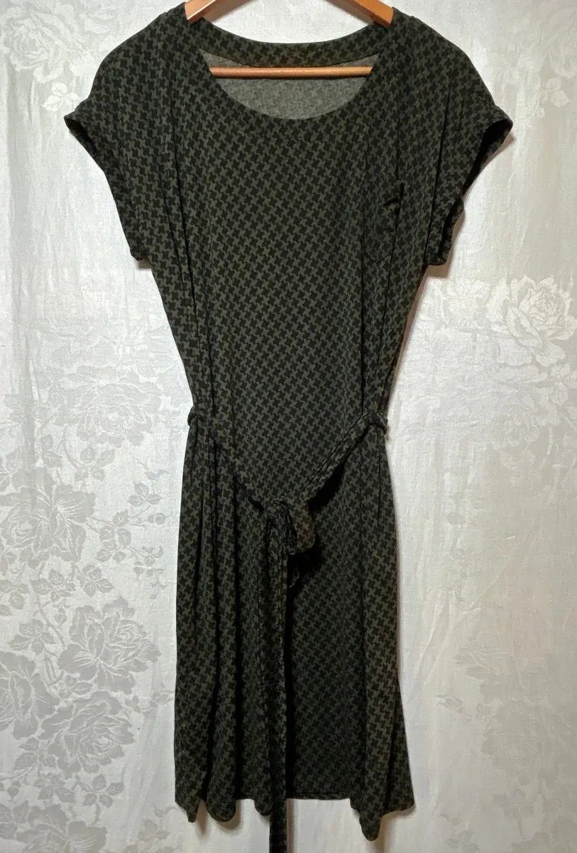 by Tavi Shift Dress Medium Green Black Houndstooth Belted Fair Trade Cap Sleeve - $34 - From Jennifer