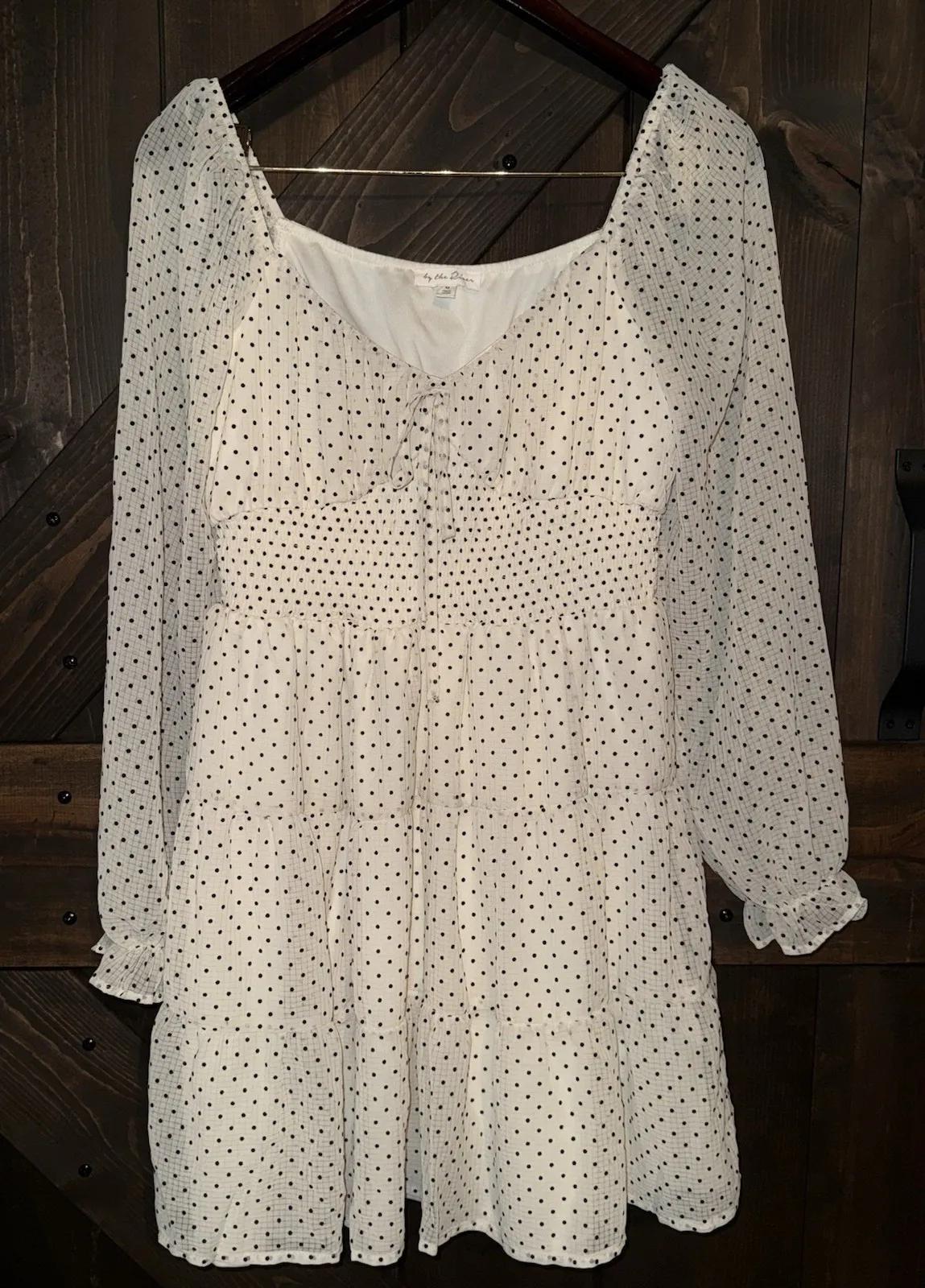 By the River Women's Peasant Dress Long Sleeveā€Ž Polka Dot Black Off White Size M - $22 - From Dana