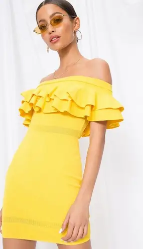 This is a gently used By The Way Revolve Emilie Tiered Knit Ruffled Mini Dress in Yellow Size Medium... Show more