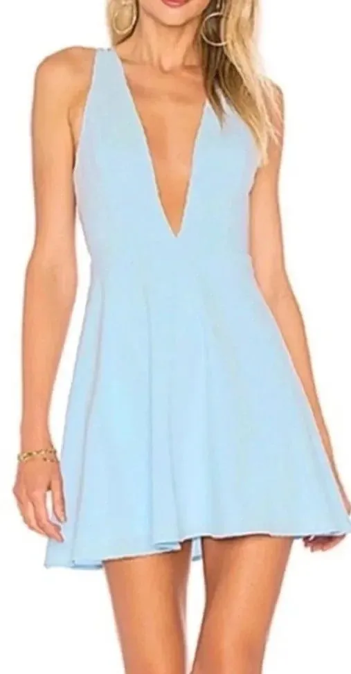 New with Tags By the Way Sammie Deep V-Neck Skater Strappy Open Back Dress in Light Blue Size S Ha... Show more