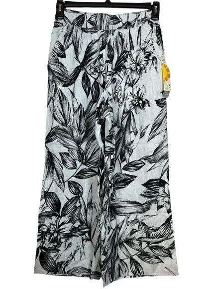 C&C California Black White Tropical Floral Leafy Wide Leg Pants LINEN NWT #0514 - $40 - From Vir