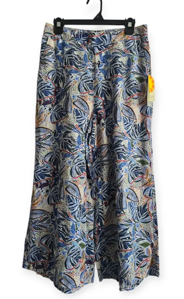 C&C California 100% Linen Floral Print Women's Wide Leg Pants New With Tags Size L Elevate your wardrobe with this stylish floral print pants. Featuring a blend of blue, green, and cream colors, it's perfect for any occasion.