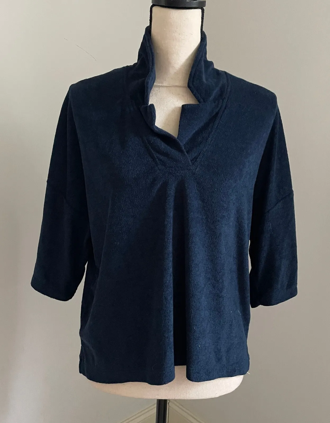 Measurements: • Pit to pit: 22 inches • Length: 22 inches Color: Blue Condition: tiny marks at bottom hem (pictured) Type: Sweater Top Department: Women Style: Basic Material: Polyester Blend, Polyester, Cotton Blend, Cotton Neckline: Mock Neck Sleeve Length: 3/4 Sleeve Sleeve Type: Raglan Sleeve Pattern: Solid Features: Relaxed Fit, Mock Neck, 3/4 Sleeve, Pullover, Comfortable Fit: Relaxed Keywords: C&C California, Pullover top, Navy blue, Womens top, Three quarter sleeve, Mock neck, Casual top, Comfortable top, Relaxed fit, Everyday top, Large, L, #boxy #coastal #terrycloth #beachy #vacation #normcore #minimalist #preppy #softgirl C&C California Pullover Large Navy Blue 3/4 Sleeve Collared Terrycloth Coastal