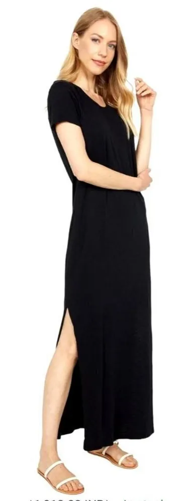 This dress from C&C California is in excellent condition. It is in a solid black. It features; Scoop neckline, Short sleeves, Tee-Shirt dress silhouette, Side vents, Maxi length with pullover style and is crafted from a rayon and spandex blend. All offers welcomed! ❤️ Professional seller, smoke free home and same or next day shipping. Like items for price drops. Receive the 30% off bundle discount when you purchase two or more items. Condition: Excellent Color: Black Size: XS Material: Rayon, Spandex designer, knit, jersey knit, long, Maxi, gothic, stretch, slimming, form-flattering, fit & flare, classic, casual, classy, trendy, chic, sophisticated, party, date night, night out, Short Sleeve, SS, modern, travel, airplane, resort wear, resort, vacation, cover-up, coverup, pool, beach, minimalist, classy, comfy, stylish, modern, Solid, Basic, Modern, Plain, Solid, Basic, Minimalist, Slit, Vented, Women's, Womens, Size 0, Size 2 Size: Womens XS Measurements: armpit to armpit 15 in / 38 cm length 52 in / 132 cm Condition: Pre-Owned Like New