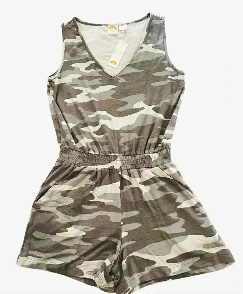 NWT C& C Green Camo Womens Smocked Romper Size: S Measurements: armpit-to-armoit 19 inches, length... Show more