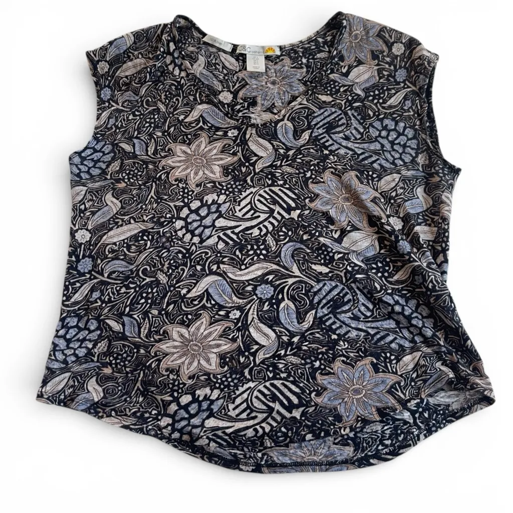 C&C California Small 100% Linen Purple Floral Capped Sleeve Top White - $21 - From Savannah
