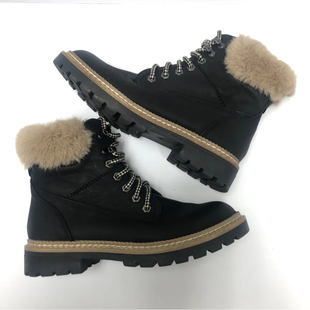Steve Madden Alaska Faux Fur Black Leather Combat Women Boots Excellent Preowned condition. Very m... Show more