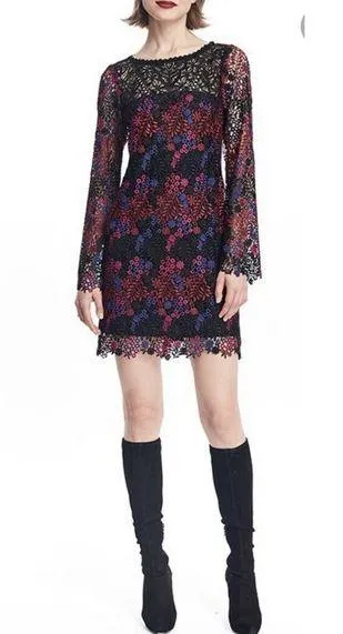 New with tag size 2 Nanette Lepore novelty lace shift dress. Sheer long sleeves. Back zip closure. F... Show more