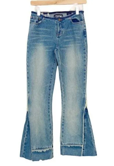Vintage LondonJean Y2K Low Rise Raw Edges Two Tone Flare Jeans Sz 0 Short Size 0 short. Gently used... Show more