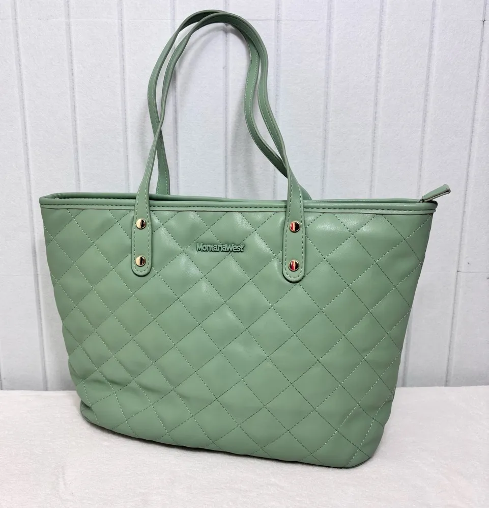 Montana West Quilted Handbag for Women Leather Tote Purse Shoulder Bag Large Fashion Satchel Hobo Purse preowned,small mark in the front, not noticeable,other the that great condition ( please see all the images) The Montana West Green Quilted Tote is a stylish and versatile accessory, featuring a chic diamond quilted pattern and sturdy leather handles. Its structured design makes it perfect for everyday use, while the elegant green hue adds a touch of sophistication to any outfit. Please reach out for any questions. Offers are always welcome. Bundle with other items from my closet for the best deal! Super Fast Shipping: Same Day/Next Business Day! (BG3)