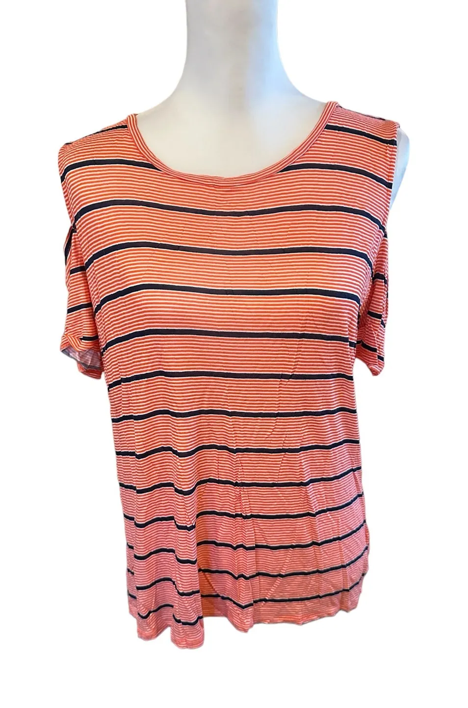 Gently used in excellent condition Michael Kors Short Sleeve top. Size XL. Striped Orange, white a... Show more