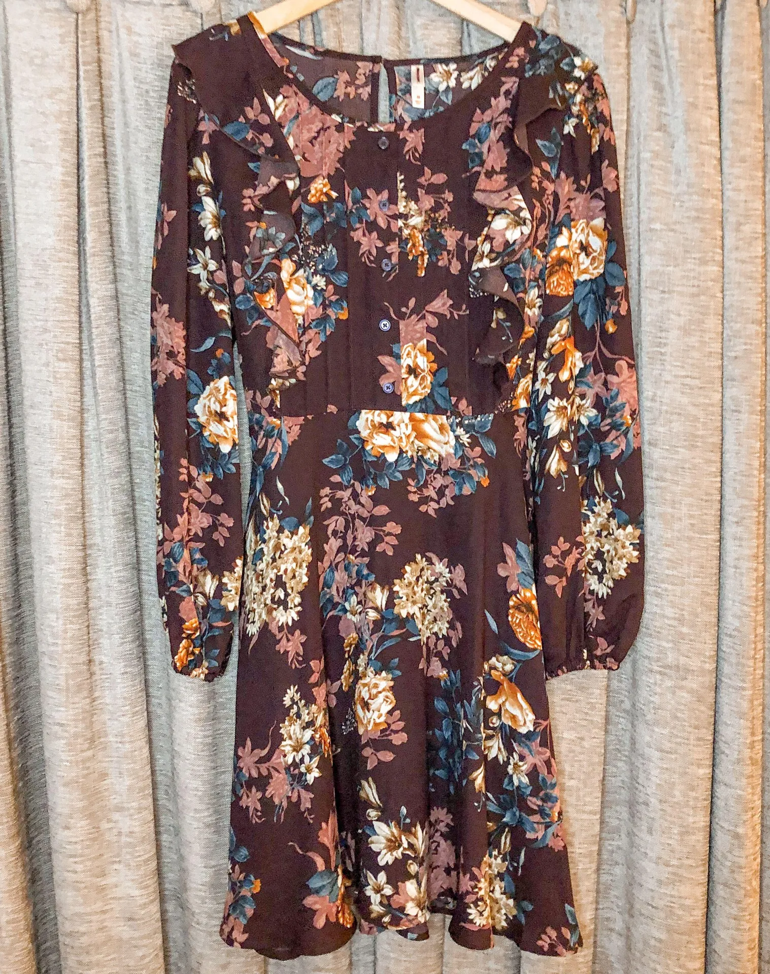 Xhiliration wine ruffle front elastic waist tie back long sleeve dress in size medium. Material as s... Show more