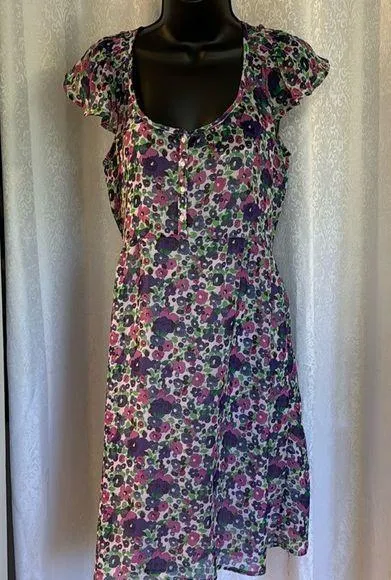 EUC. Separate lining attached. Belt tie in Back. Button front. Flutter cap sleeve. Spring Boho picn... Show more