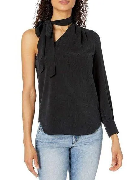 AG Adriano Goldschmied Women's Malia Tie Neck One Sleeve Top Blouse Black Size: XS Brand New With... Show more