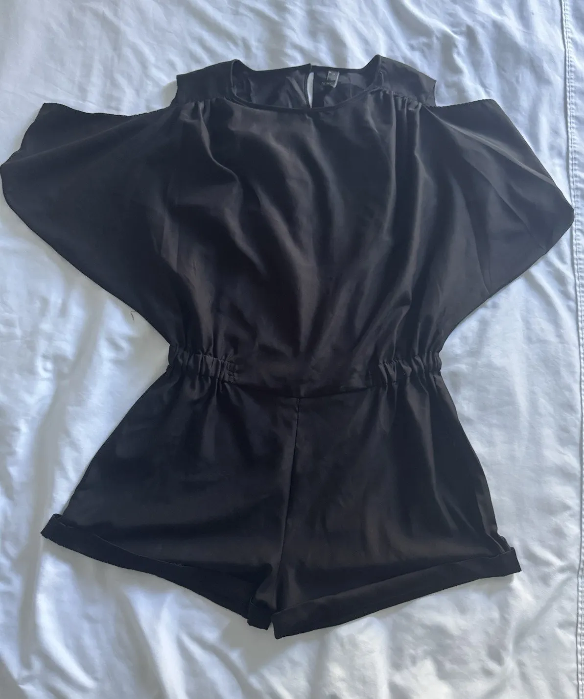 The Poof Couture Black Romper features a stylish design with a witchy vibe, perfect for those looking to make a statement with their outfit. The cuffed shorts and cold shoulder detailing add a trendy touch, while the size large is ideal for juniors. The black color makes it versatile for various occasions, making it a must-have addition to any fashion-forward wardrobe. Perfect for those who want to stand out and showcase their unique style with this one-piece wonder.