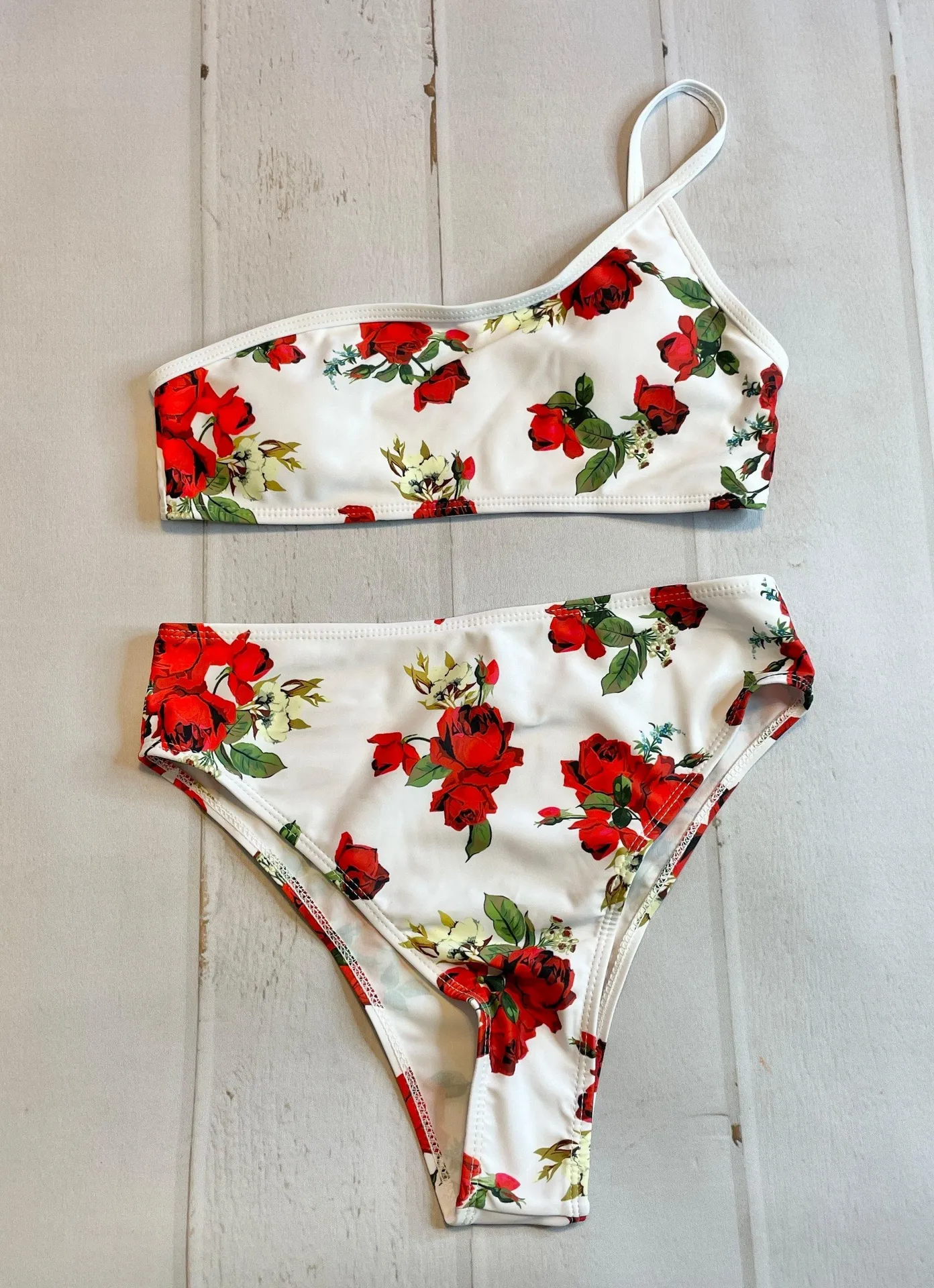 NWOT - Shein - Women’s White & Red Flora Thong Style Bikini - Size Small. Brand new without tags. Fr... Show more