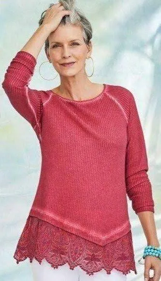 Soft Surroundings Ruby Red Jasmin Thermal Waffle Knit Lace Hem Long Sleeve Tunic Size M - $50 (36% Off Retail) New With Tags - From Karena