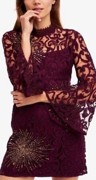 Color : Plum with old sequins Retail: $168 Free People North Star Sequin And Lace Mini Dress. Wow... Show more