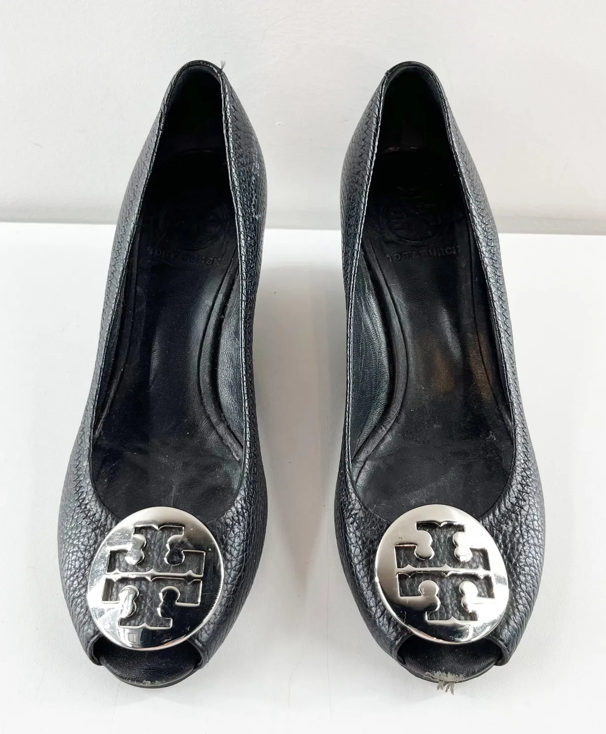 Brand - Tory Burch Size - 6.5 Preowned - some scuffing/wear at toe (pictured) black, leather, silver... Show more