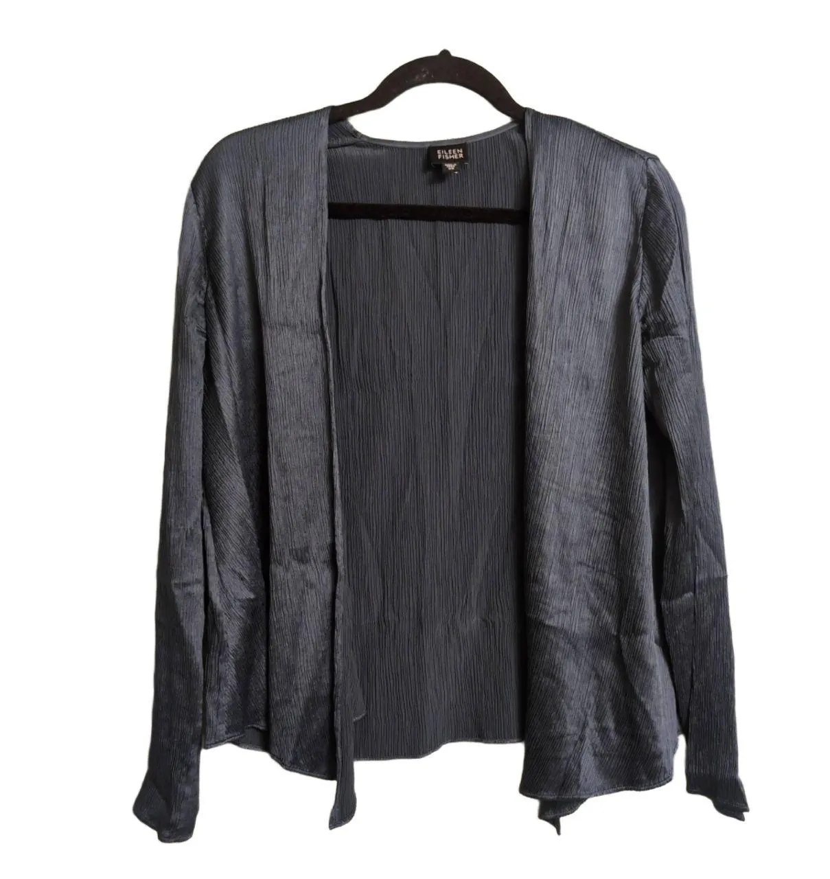 Eileen Fisher Blue Crinkle Silk Textured Open Front Drape Cardigan Long Sleeve XS Experience effort... Show more