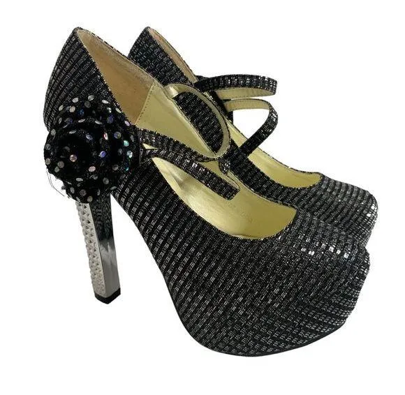 Gatuxus Metallic Platform High Heels Womens 7 Black Silver Straps Flower Size undefined - $36 (52% Off Retail) - From Crystal