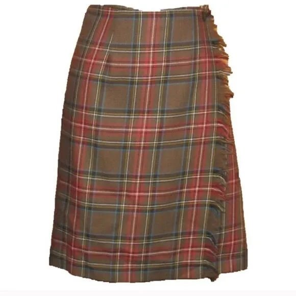 Vintage Rafaella Wool Full Wrap Fringe Skirt *Excellent condition. Details: Rafaella Size: 12 (runs small) Color: Olive green/Rust/Blue Plaid Button/snao closure Mini length Full wrap style Fully lined Fringe detail 100% Wool Measurements: Length: 21" Waist: 31" Hips: Approx. 38"