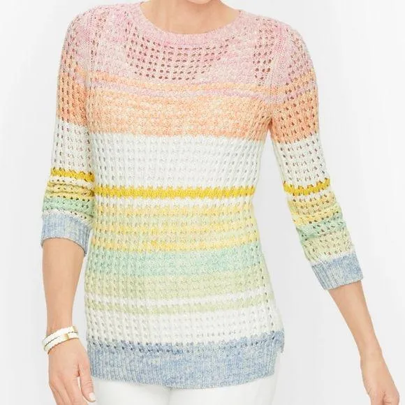 Open Stitch Cotton Sweater. A breathable open-knit construction. Colorful summer stripes. When breez... Show more
