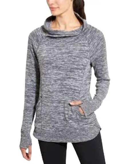 Athleta Gray Techie Sweat Track Yoga Sweatshirt Top Sz S two hidden front kangaroo pockets - Cross... Show more