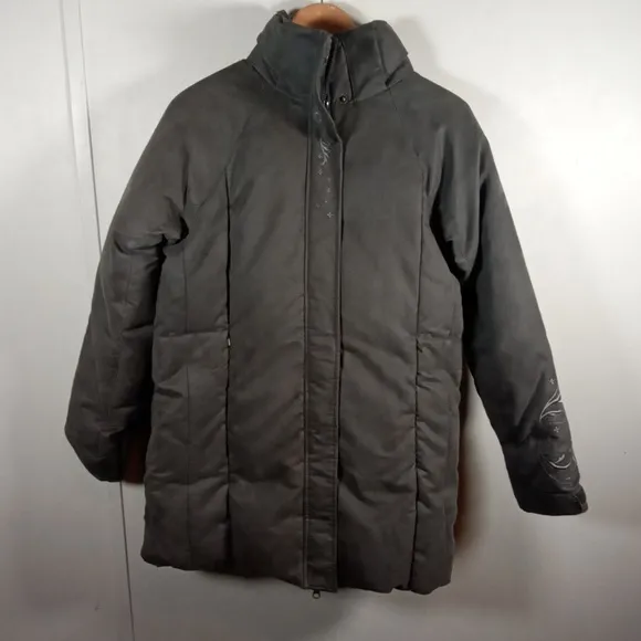 cabelas Goose down puffer coat it's full zip with snap buttons. Has hood its removable..it has two z... Show more