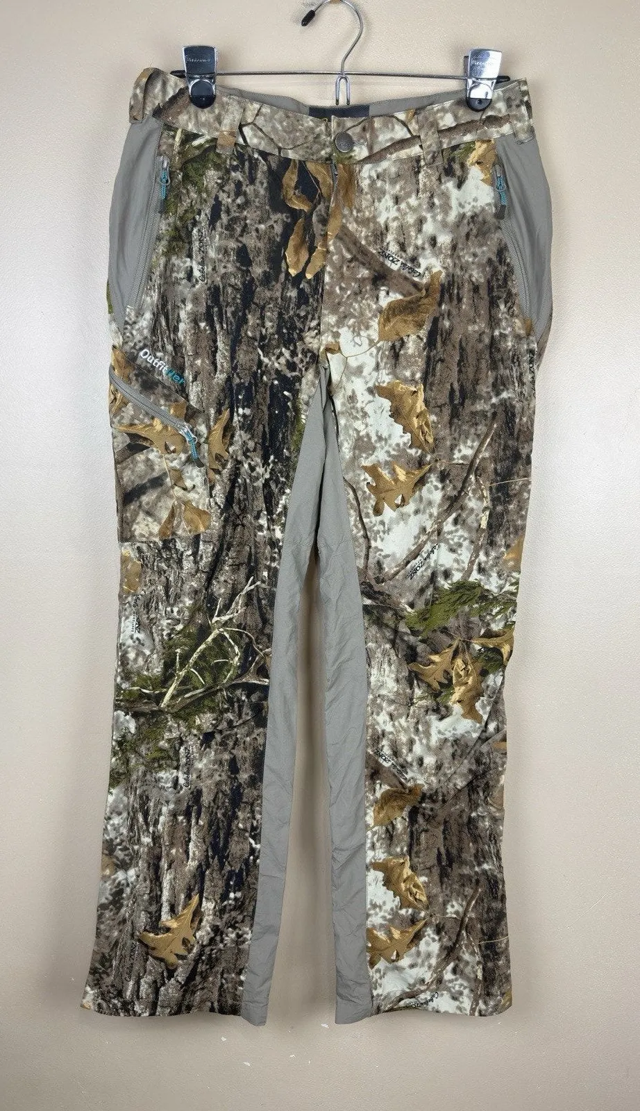 Cabela’s Zons Woodlands Camo Pants for women, size 8 / waist 31”, inseam 30”. Made from durable nylon, designed for hunting and outdoor activities. Features UPF 30 sun protection, multiple pockets for convenience, and classic woodland camouflage pattern. Comfortable mid-rise fit, perfect for outdoor adventures.