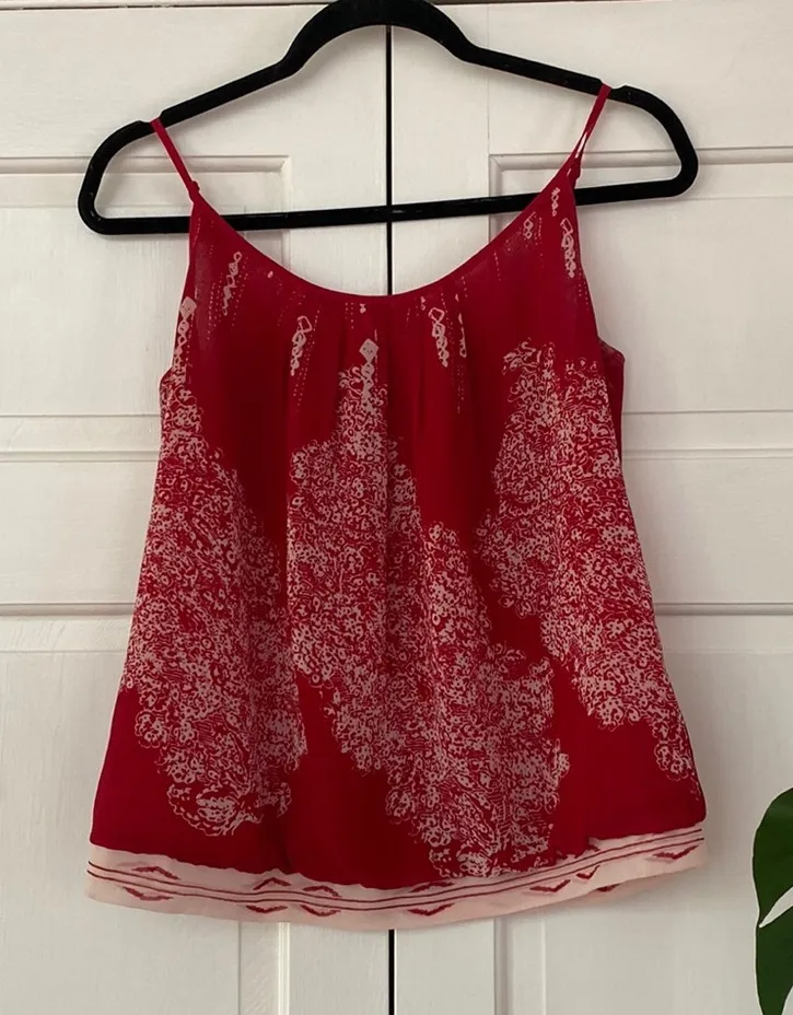 Cabi Womens Township Cami Top Red White Floral Spaghetti Strap Scoop Neck XS Flatlay measurements... Show more