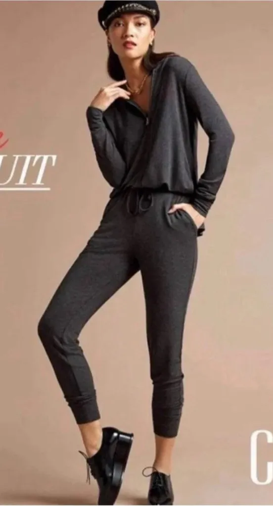 Cabi 3515 Hoodie Playsuit Jumpsuit Womens Size M Dark Gray Jogger Casual Pant Good gently pre-owned... Show more