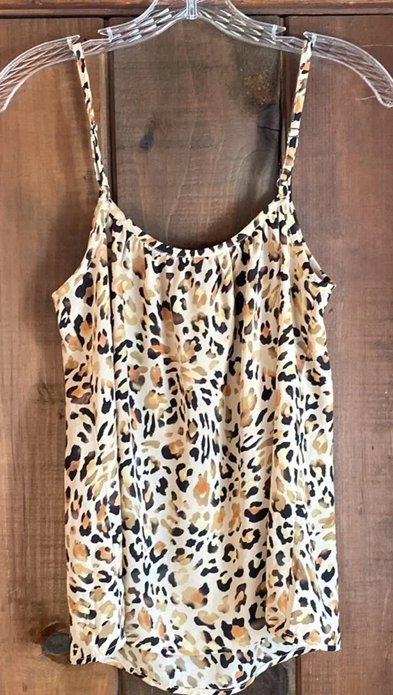 CAbi Animal Print Leopard Camisole Cami Top Tan Black Gold Bronze Size SMALL EUC *no issues no... Show more