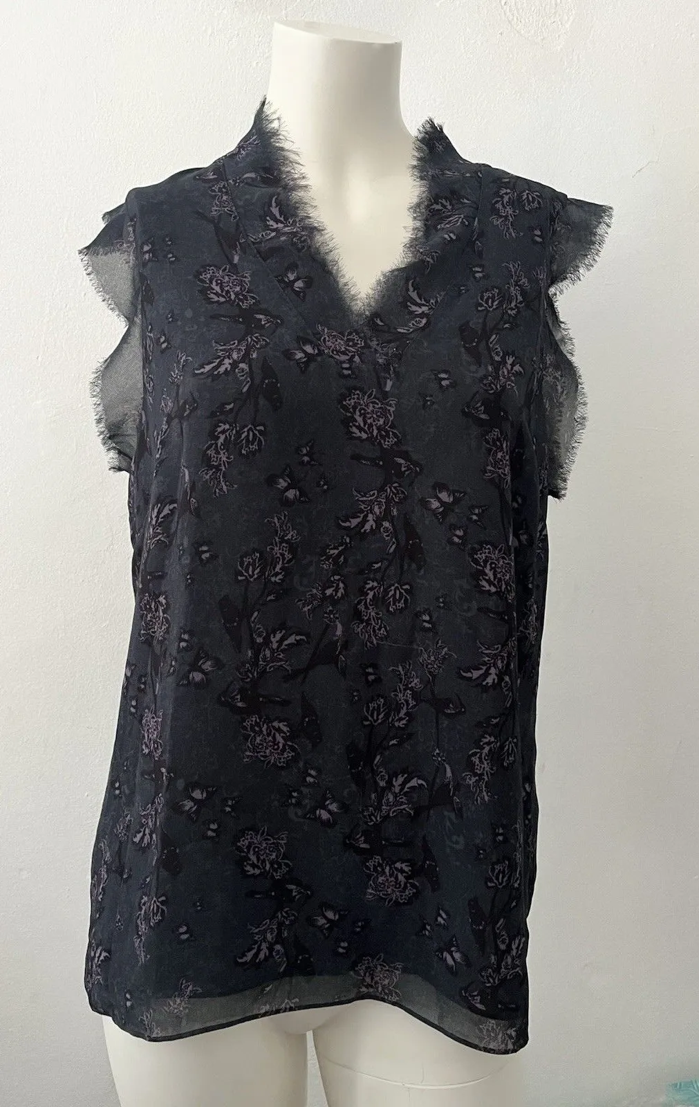 Chiffon like trim at the sleeve V neckline Purple black dark romantic fairy whimsigoth Lined Polyest... Show more