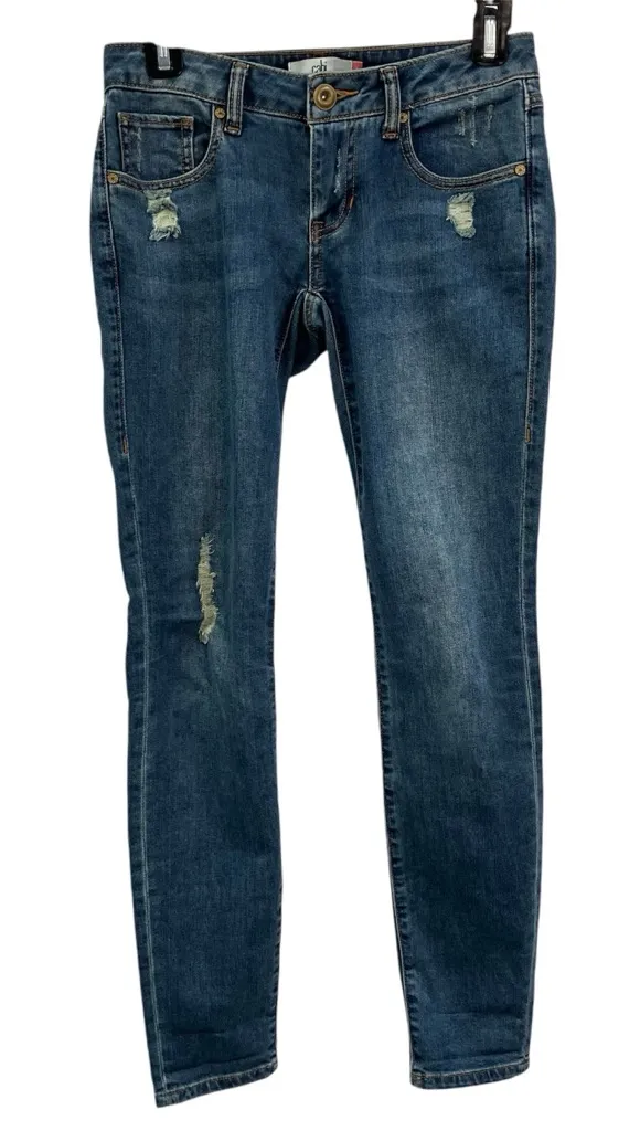 Cabi Distressed Low-rise Skinny Jeans Medium Wash Womens size 0 Denim Grunge Waist:14in Rise:7in... Show more