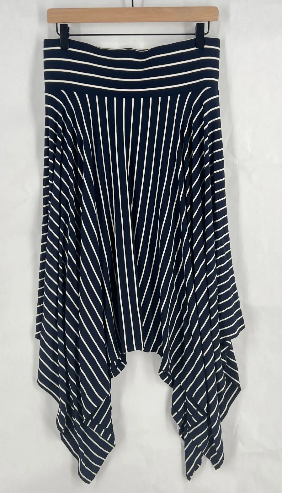 Description Cabi Flare Skirt Womens Medium White Blue Striped Asymmetric Hem Casual Preppy. Produ... Show more