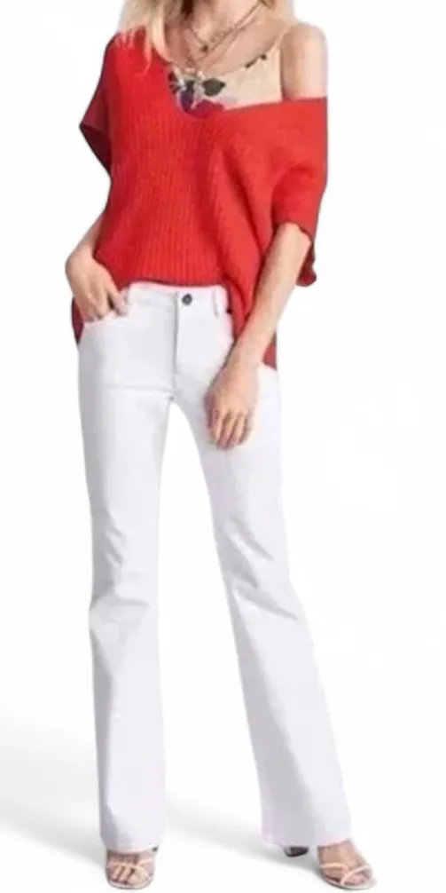 CABI STRETCHY WHITE FLARE WIDE LEG TROUSER JEANS Belt loops. Zippered front with a single button cl... Show more