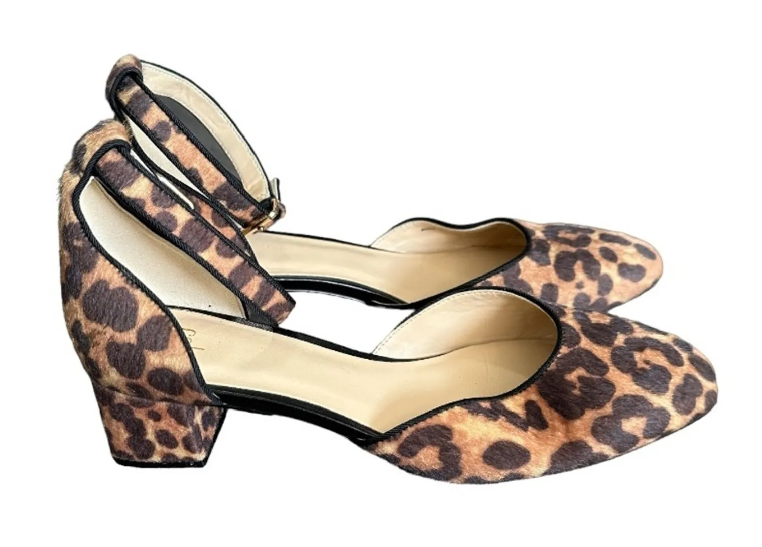 Cabi Kiki Faux Hair Leopard Cheetah Ankle Strap Kitten Block Heels Ankle buckle strap Kitten block h... Show more